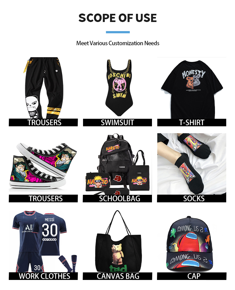 シェーカーを備えたこの技術 dtf プリンター印刷機は、次のような印刷に適しています。